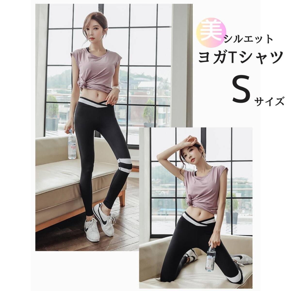 パープル フィットネス レディース 体系カバー S ジムウェア ヨガTシャツ
