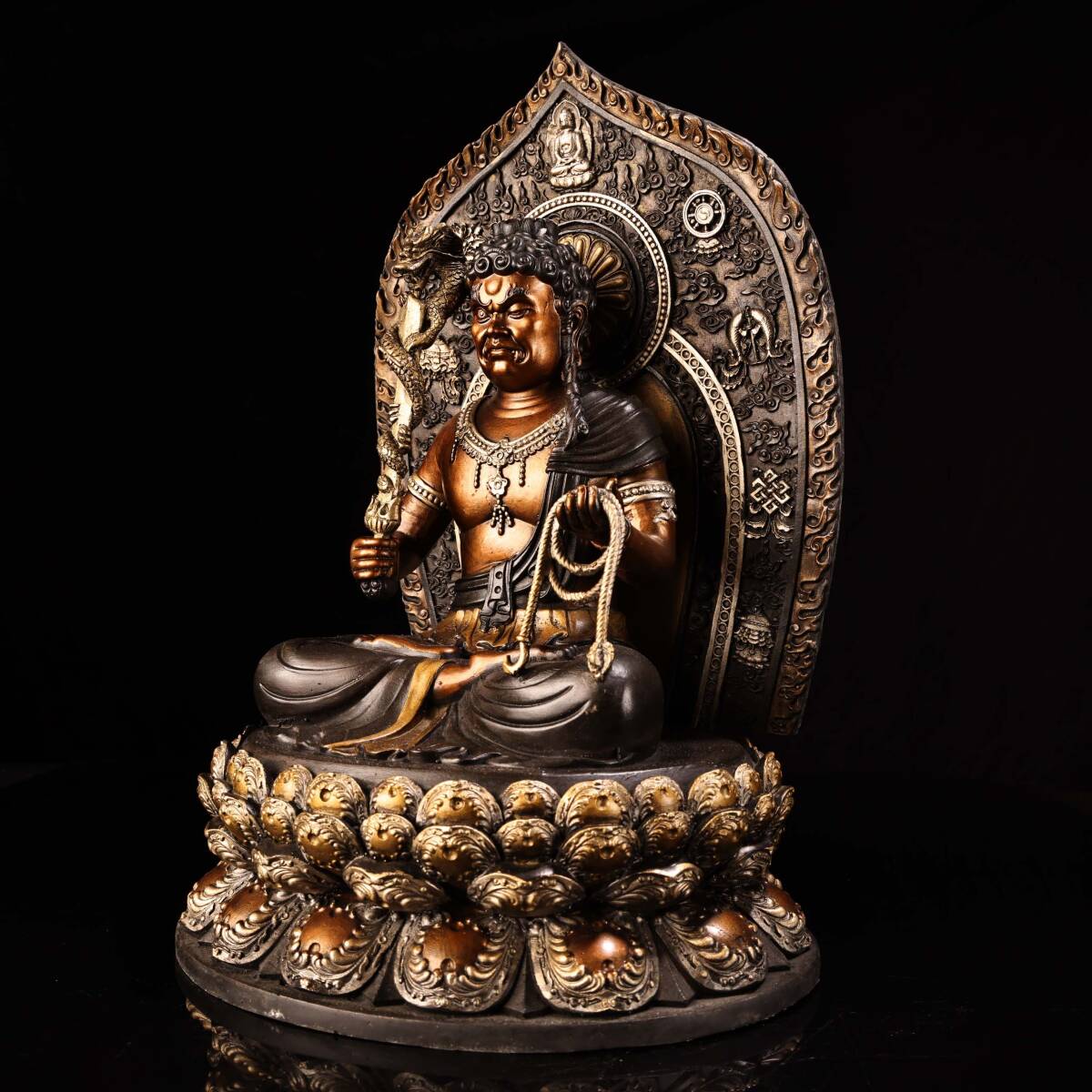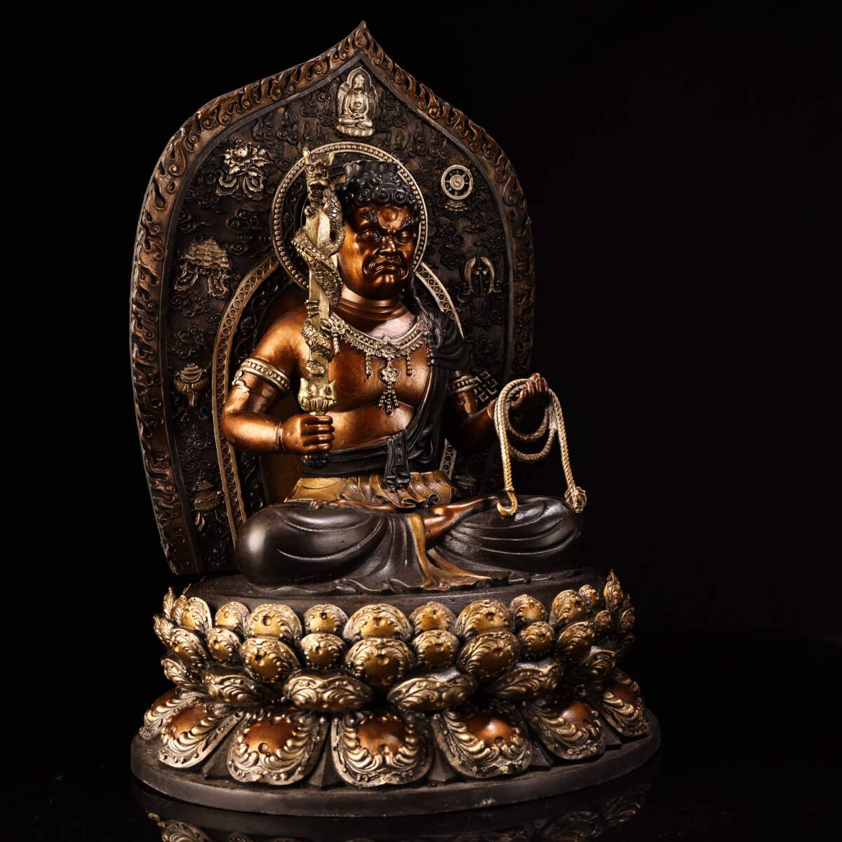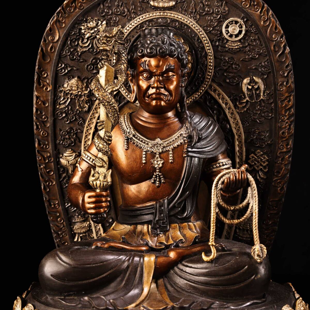 唐物 清 純銅 全銅 高レリーフ鏨刻 描金銀不動明王仏像1体 仏像 奉納されていた 供養品 銅製 銅器 極細工 古美術品 中国古玩 骨董品 D610