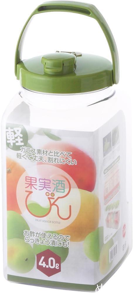 タケヤ化学工業 TAKEYA 果実酒びん 角型 S型 4.0L グリーン 空気弁付き ロック機能付き 収納しやすい角型 PET素材