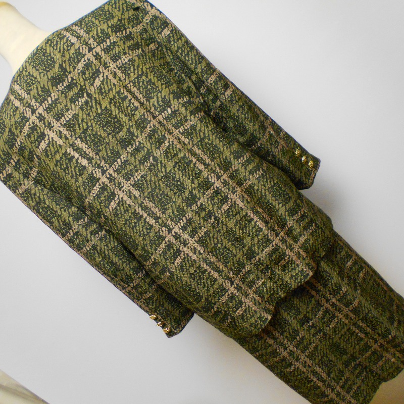 973179 Leilian レリアン カーキ系柄 スカートスーツ セットアップ 13+