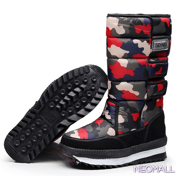 レディース スノーシューズ 【867】 23.0cm 迷彩レッド ムートンブーツ スニーカー ウィンターブーツ 裏起毛 防水 防寒 防滑 冬用靴 綿靴