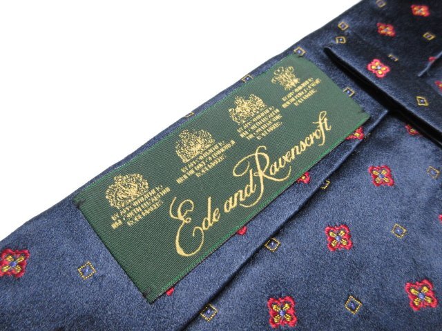 【イードアンドレーベンスクロフト Ede & Ravenscroft 】小紋刺繍柄 シルク ネクタイ (メンズ) 濃いめのネイビー系◇17MM8571◇
