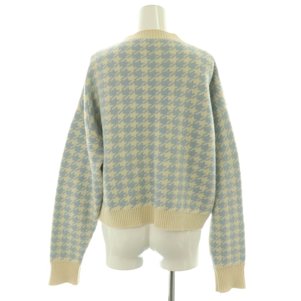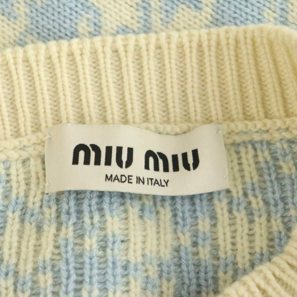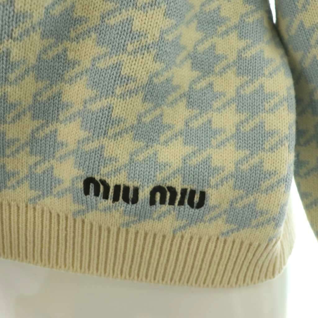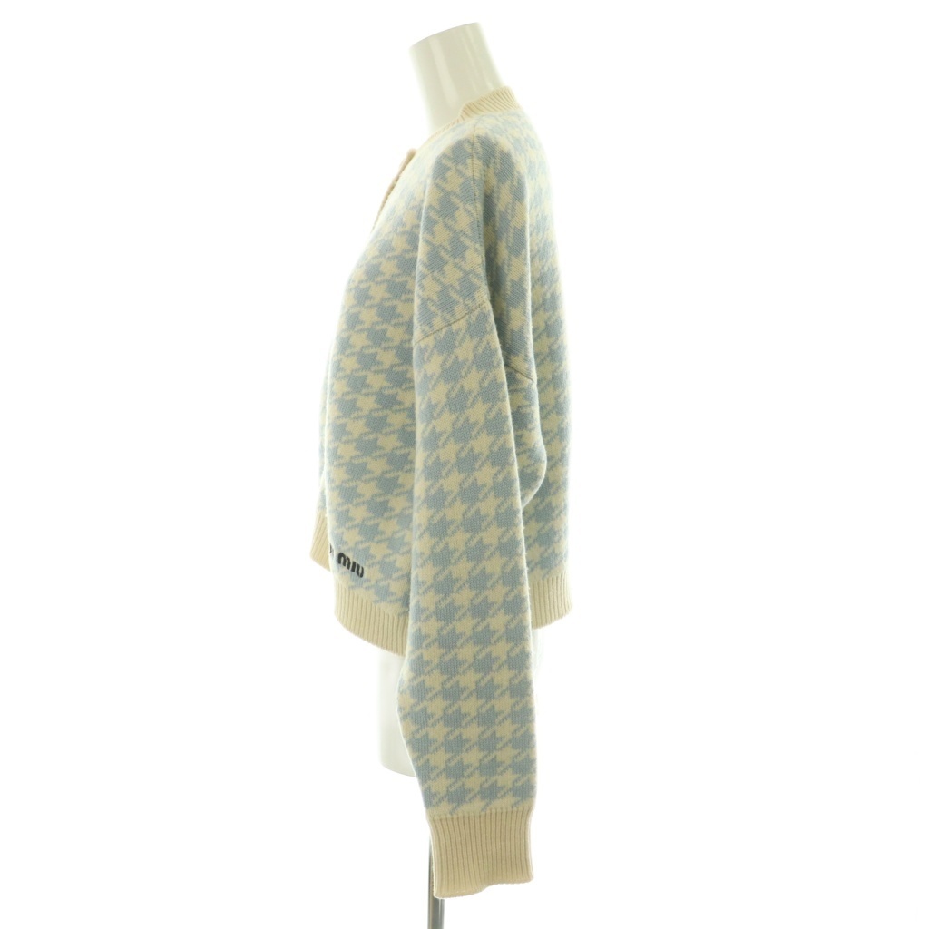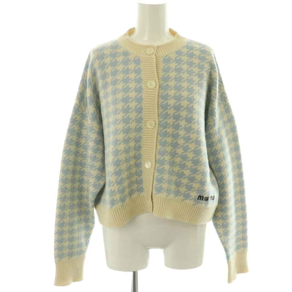 ミュウミュウ miumiu MMF651 カシミヤ ロゴ刺繍 千鳥格子 カーディガン ニット 長袖 38 水色 アイボリー /NR ■OS ■SH レディース