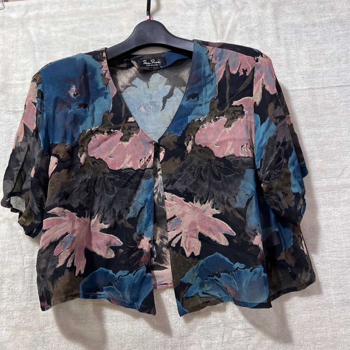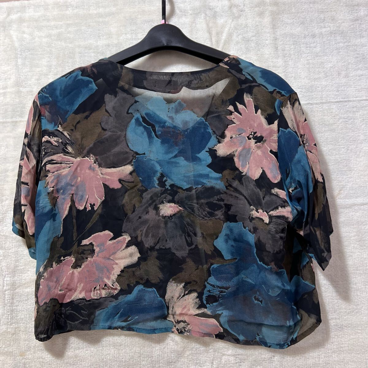 商品説明:C3111 Sun Rose サンローズ 花柄 カーディガン 透け感あり 総柄 ショート丈 ドイツ製生地 ボタン1つ ユーズド 状態画像にて 現状にて
