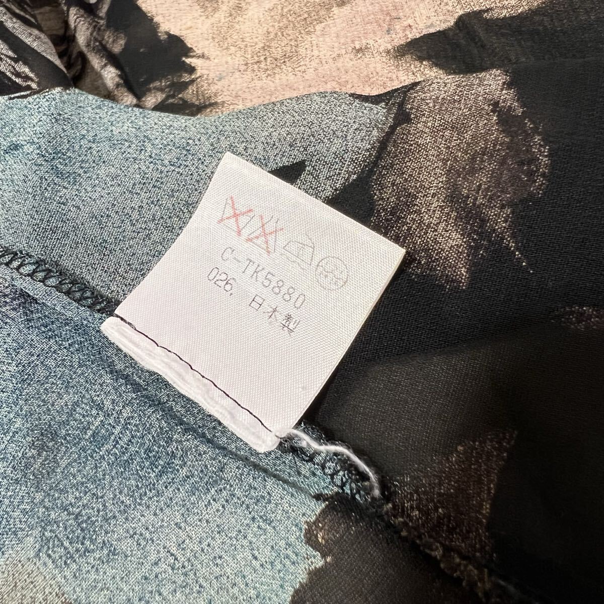 素材に関する明確な品質表示(ポリエステル100%など)は写っていませんが、デザインや洗濯表示から、化学繊維(ポリエステルなど)のデリケートな素材である可能性が高いです。