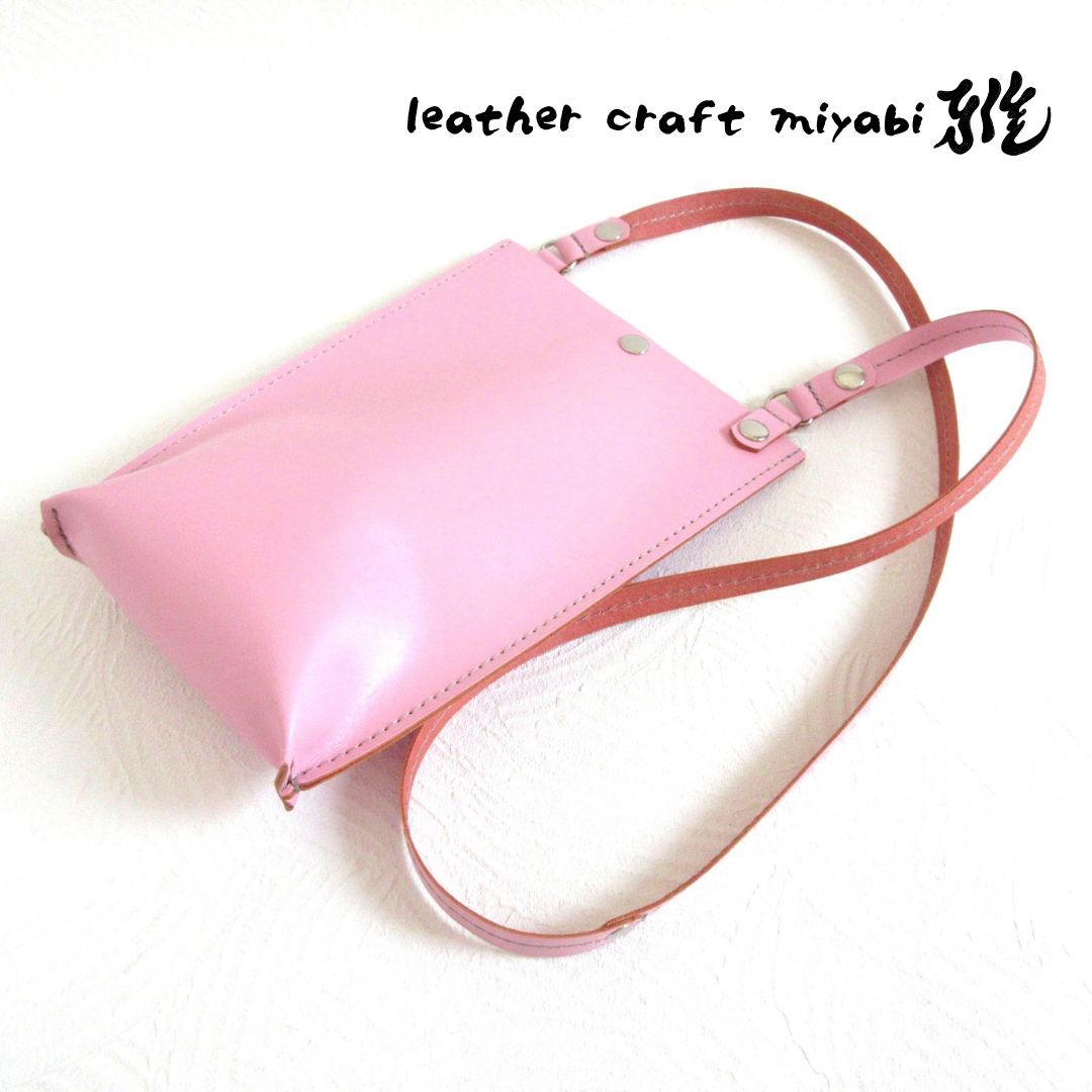 【L.C 雅】《本革 牛革》シンプルサコッシュ・タテ型・スムース・ピンク・0168