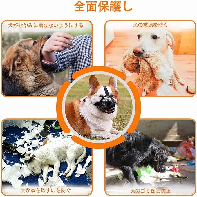 MJ-H402★犬用口輪 犬用 マズル口輪 犬の口輪 しつけ口輪 犬無駄吠え対策 犬 口のカバー 噛み防止 家具破壊防止 傷舐め防止 小 中 大型犬 犬用訓練 サイズ調節可能 犬用訓練用品 (グレー, M)
