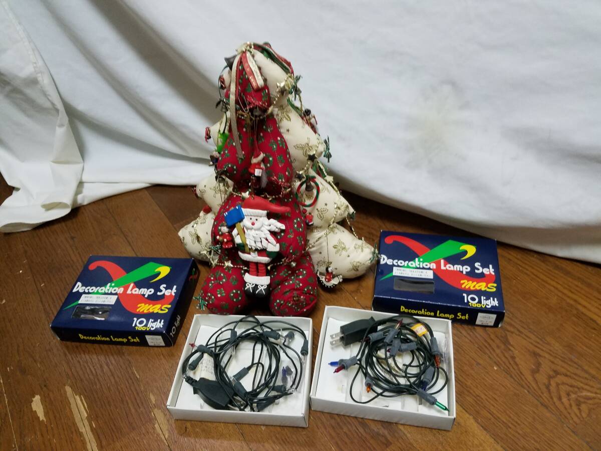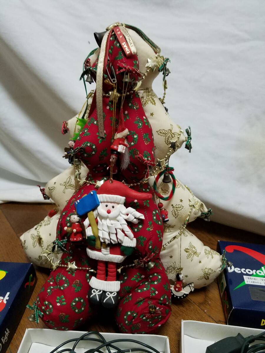【雑貨】 クリスマスツリー 高さ:35cm キルティング製 イルミネーションランプ付き(点滅確認済み)