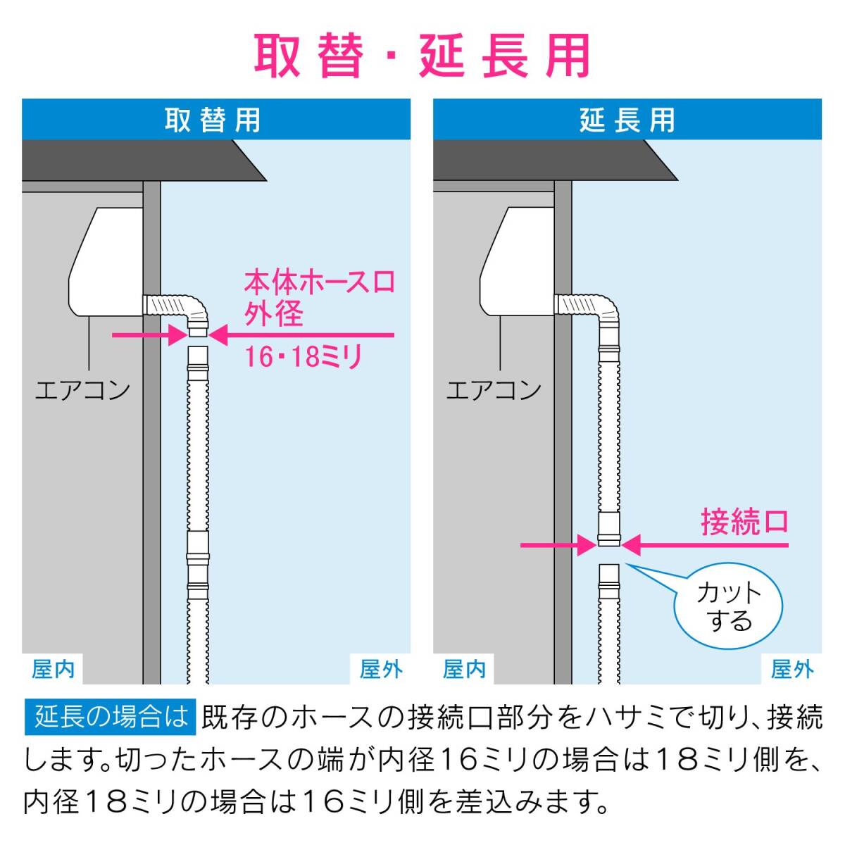 ◆補修や延長に最適なエアコン用ドレンホースとドレンホースに取付ける逆止弁のセット ◆エアコンの本体ホース口外径16・18ミリに取付けできる ◆約50cm毎に接続口を設けており、ホース接続部内径16・18ミリに取付けできる ◆外気の侵入を防ぎ、不快なポコポコ音を防ぐ ◆逆止弁で臭気と害虫の侵入を防ぐことができる ◆弁体を簡単に取り外せるので、掃除が簡単にできる ◆ホース内径16ミリ×外径21ミリ ◆ホース長さ 4m
