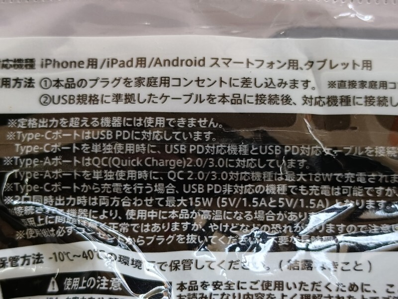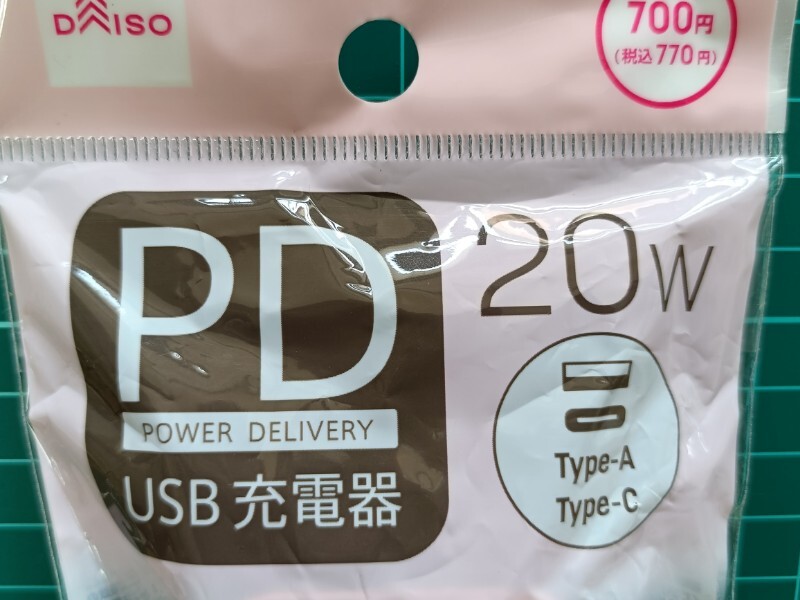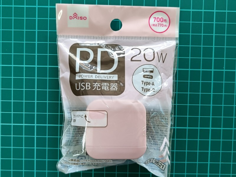 USB充電器 PD USB-A&USB Type-C 各1口 最大20W ピンク 未使用品1台