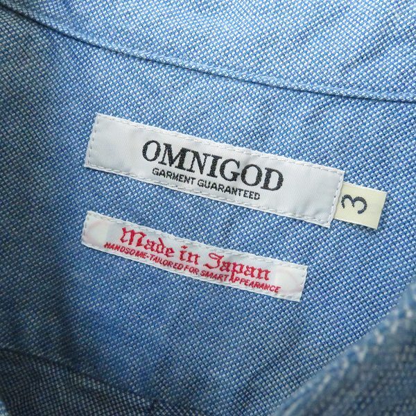 | 商品名 | OMNIGOD オムニゴッド 7部袖 シャツ プルオーバー インディゴ染め a931838ss |