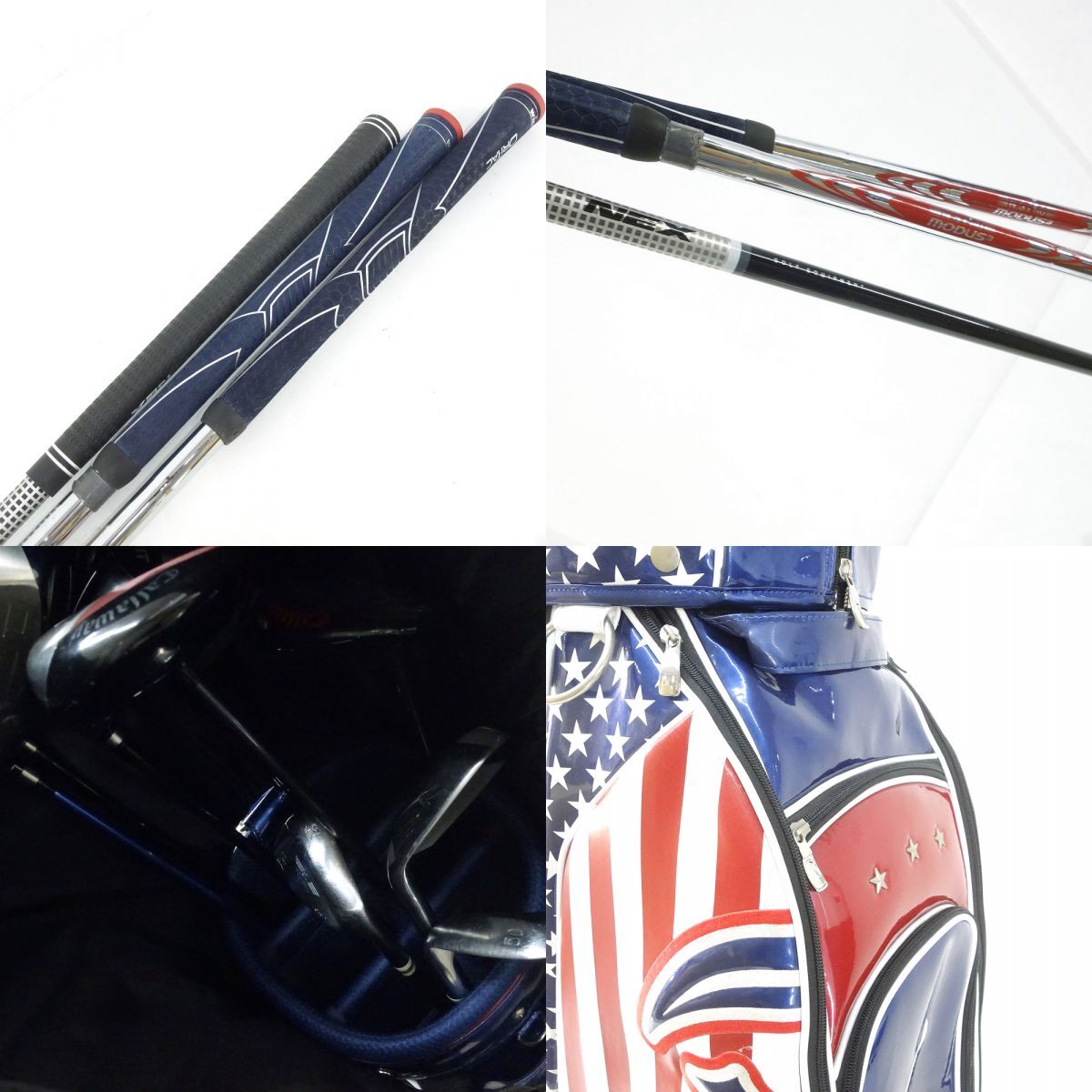 116 キャロウェイ イグニオ トブンダ ウォズ ドライバー 3W 5W 7W 匠ウェッジ 50 54 NEX アイアン 7I 9本セット ゴルフクラブ ※中古 □付属品:キャディバッグ ※画像にあるもので全てです。 □仕様 ・WOSS BATA2041 ドライバー シャフト:オリジナルカーボンシャフト ・IGNIO HB-i ドライバー シャフト:オリジナルカーボンシャフト フレックス:R ・Callaway DIABLO Octane 3W DIABLO EDGE 5W 7W シャフト:オリジナルカーボンシャフト フレックス:SR ・TOBUNDA TRY FIT 5W シャフト:オリジナルカーボンシャフト フレックス:S ・TEAM TOHO 匠ウェッジ 50 54 シャフト:N.S.PRO modus3 スチール ・NEX GOLF EQUIPMENT アイアン 7I シャフト:オリジナルカーボンシャフト フレックス:R □状態 ・本体には使用に伴うスレキズや汚れ、サビ、剥げが見られます。 ・シャフトには使用に伴うスレキズや汚れが見られます。 ・匠ウェッジのシャフトに鉛テープが貼られています。 ・グリップには使用に伴うスレキズや汚れが見られます。 ・キャディバッグには保管に伴うスレキズや汚れが見られます。 □備考:なし ※画像では判別しづらいUSED品特有の薄い汚れや薄いキズ、細かいキズなどある場合があります。 |