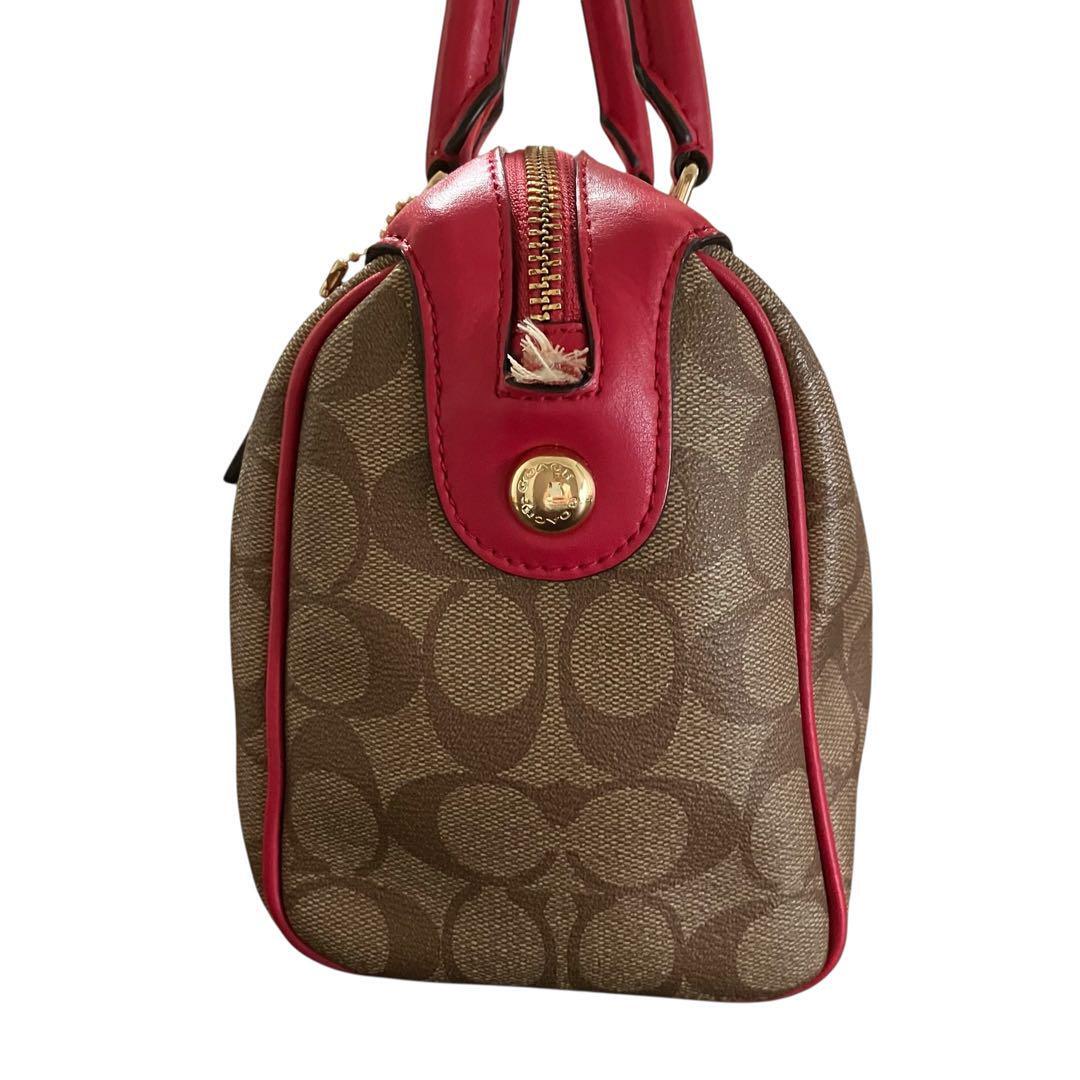 【MY0064】COACH コーチ 中古品 レディース ボストンバッグ ハンドバッグ シグネチャー ミニ トート ブラウン ピンク 58312 PVC レザー