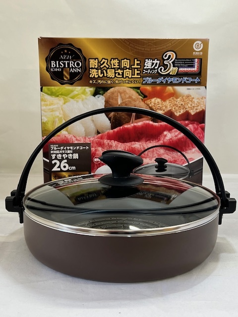 【菊水-627】NEWビストロ庵 ブルーダイヤモンドコート IH対応 ガラス蓋つき すきやき鍋26㎝ ND-8542/(S) |