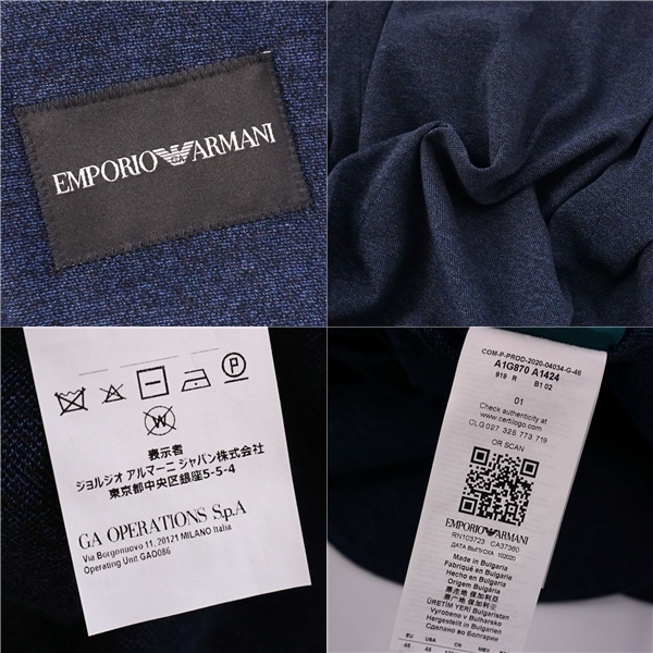 | 未使用 エンポリオアルマーニ EMPORIO ARMANI ジャケット テーラード ニット コットン メンズ 46(S相当) ネイビー |