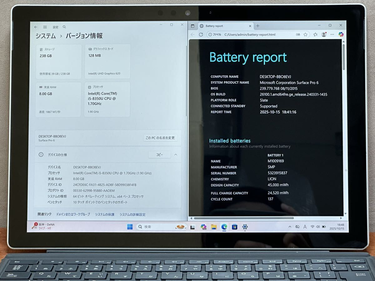 ・CPU: Core i5-8350U 1.7GHz, ターボブースト: 3.6GHz