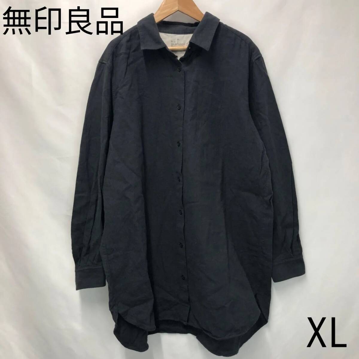 無印良品 ムジルシリョウヒン レディース ネルシャツ 長袖 コットン ブラック XLサイズ
