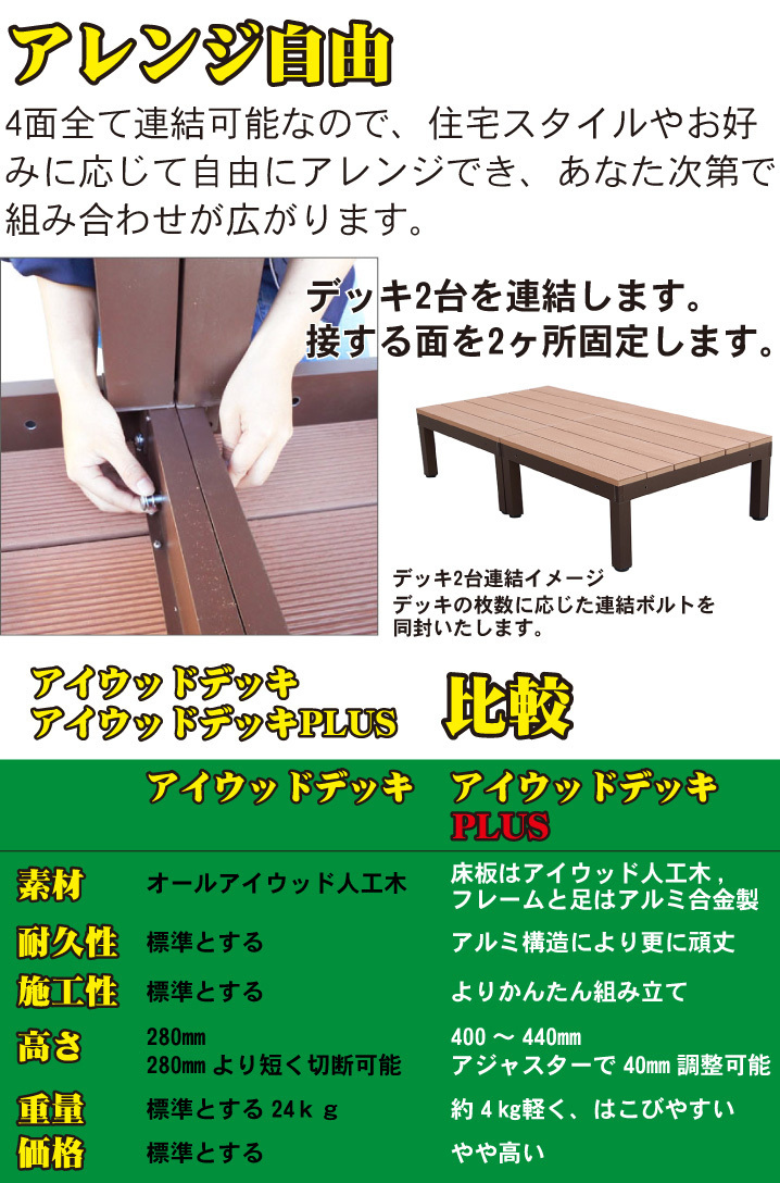 材質:アイウッド樹脂木・アルミ