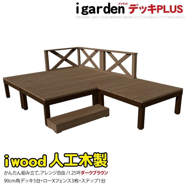 igarden アイウッドデッキ PLUS 9点セット(デッキ5・クロスローフェンス3・90ステップ1) 樹脂製 アルミ