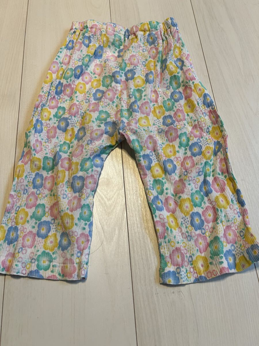 カラフルな花柄が可愛らしい7分丈のパンツです。ウエストはゴムで履かせやすく、これからの季節にぴったりです。