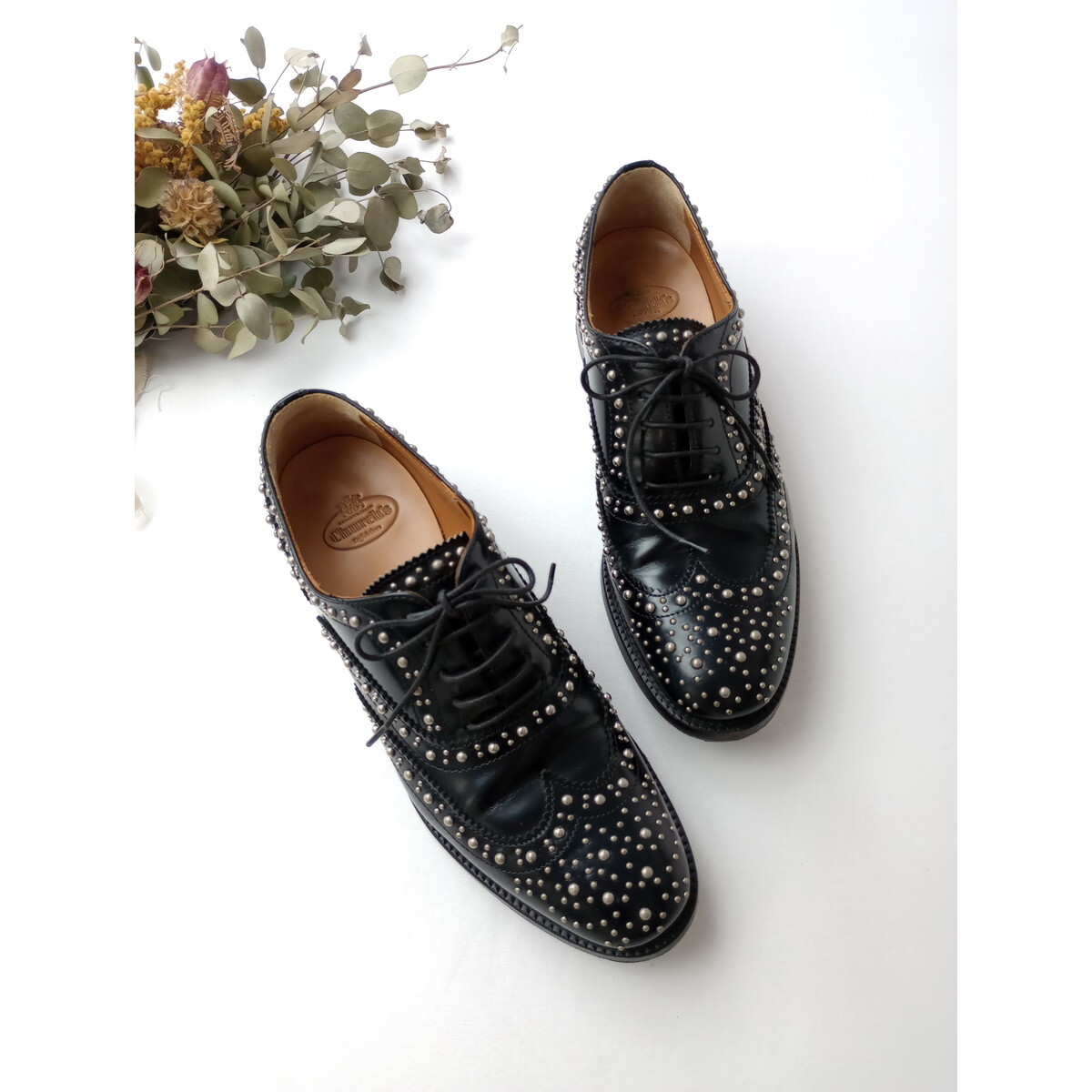 Church's チャーチ Burwood バーウッド スタッズ レースアップ レザー シューズ 靴 黒 ブラック 35
