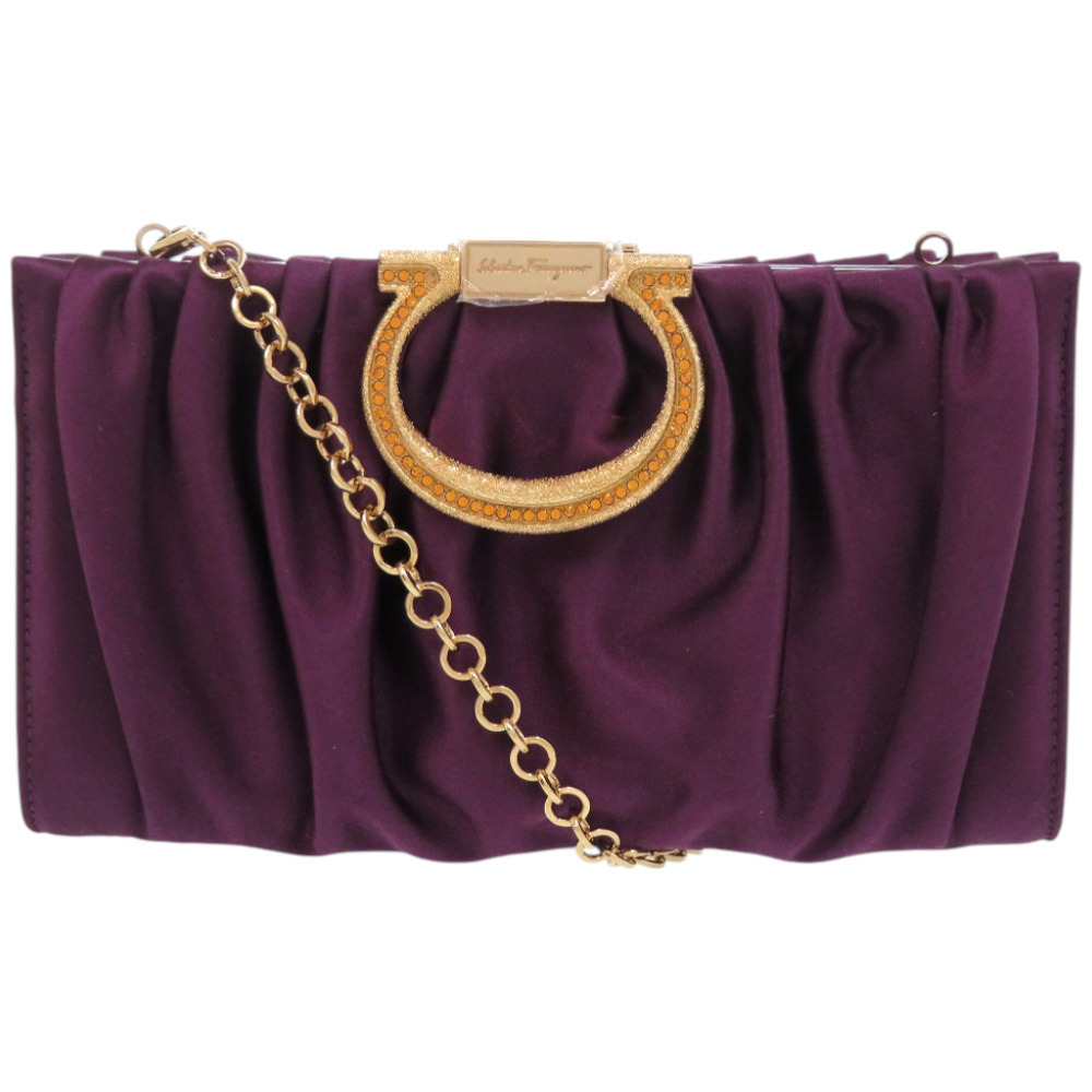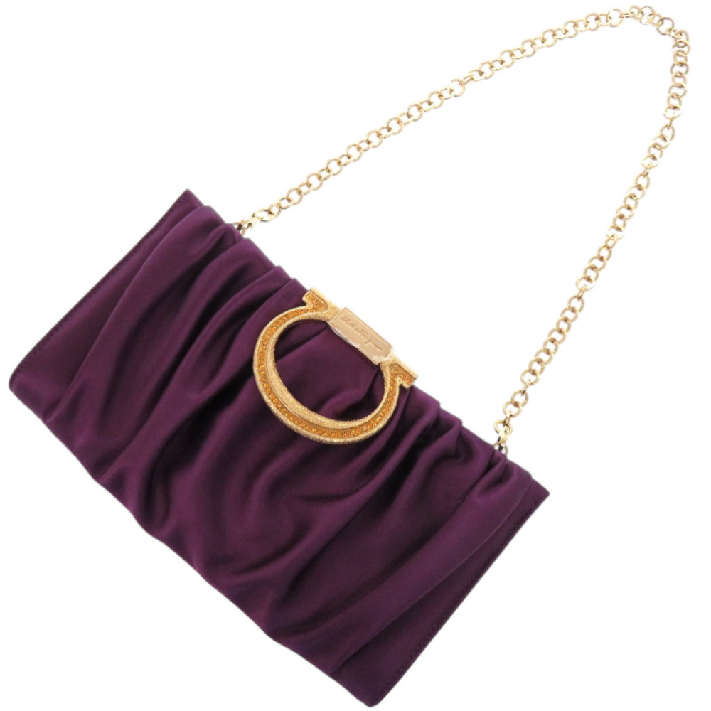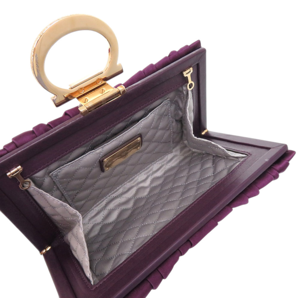 新品同様 サルヴァトーレフェラガモ ガンチーニ E0 21 B912 サテン パープル 紫 クラッチバッグ 0467 Salvatore Ferragamo