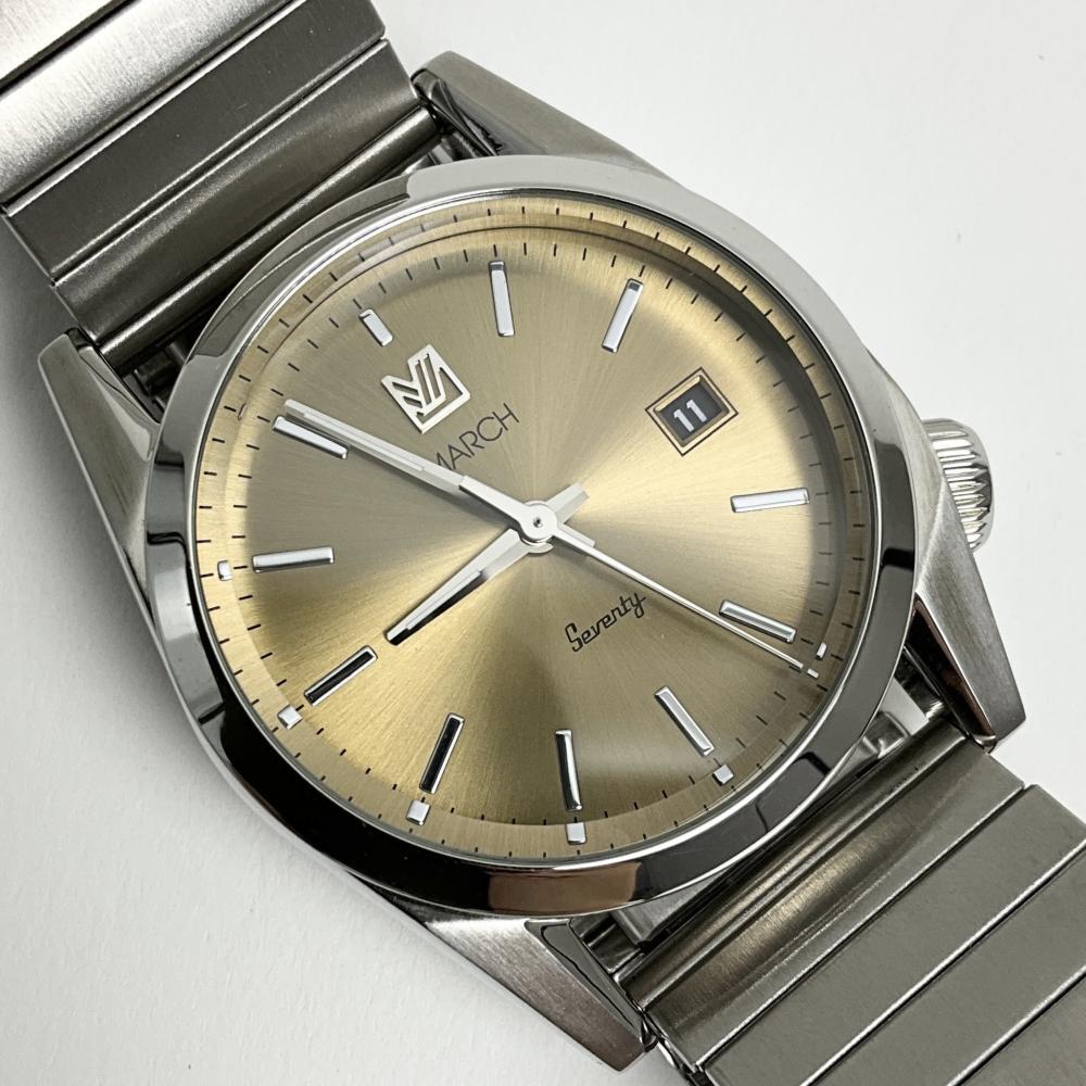 | 商品名 | MARCH LA.B マーチエルエービー 腕時計 SEVENTY2EXP1M ユニセックス メンズ レディース シルバー アナログ カレンダー 蛇腹ベルト 36mm |