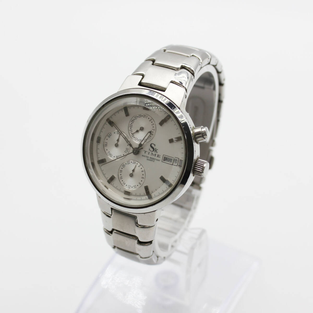 W251016-06 Sk TIME エスケータイム メンズ腕時計 クォーツ クロノグラフ デイト ジャンク 文字盤シルバー ラウンド