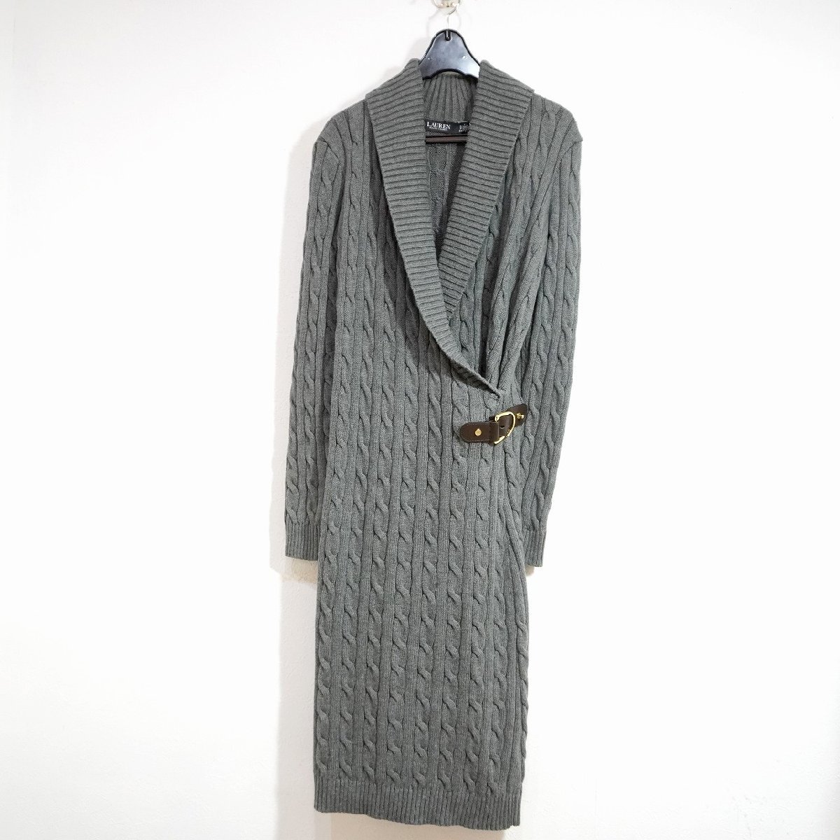 LAUREN RALPH LAUREN (XS) 155/80A バックル付き ケーブルニットワンピース ドレス ローレンラルフローレン J10-71