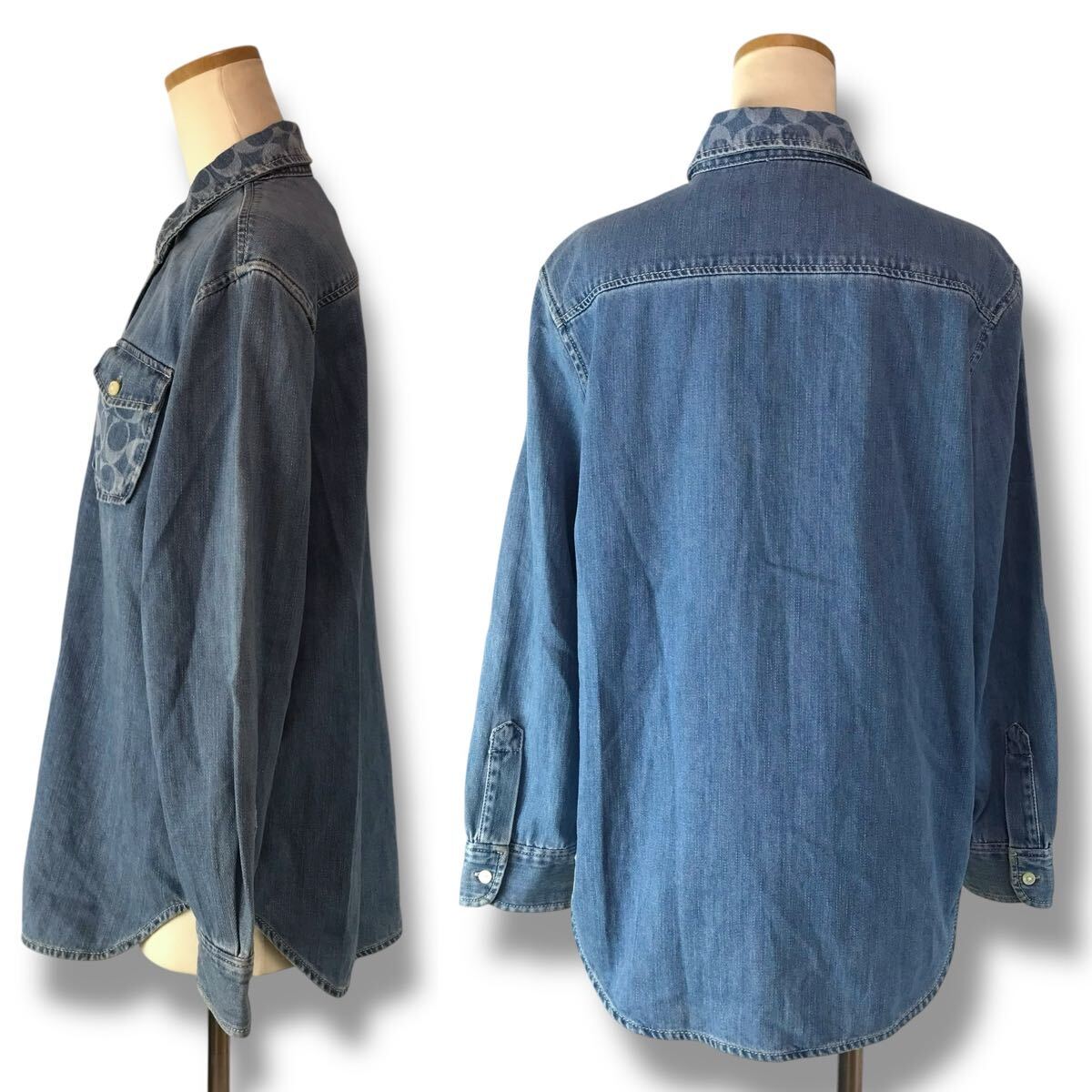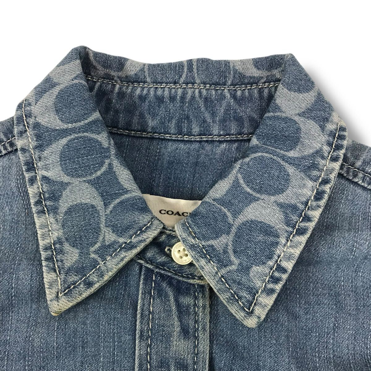 d131 COACH デニムシャツ XS シグネチャー ブラウス 長袖 トップス インディゴ コットン100% メンズ レディース ユニセックス 正規品