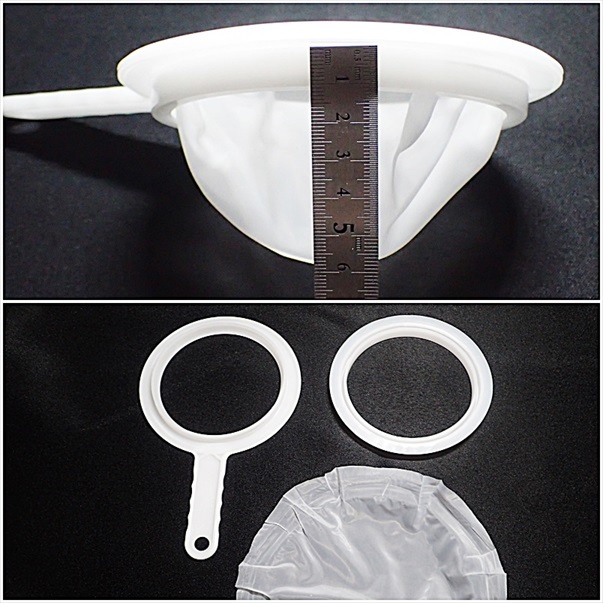 網目が細かいので粗目の網より濾すのに時間はかかります。