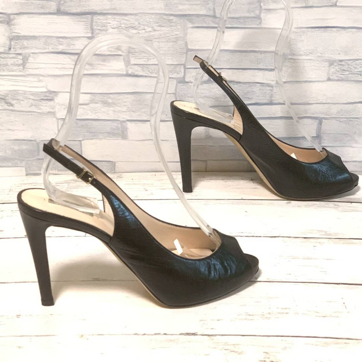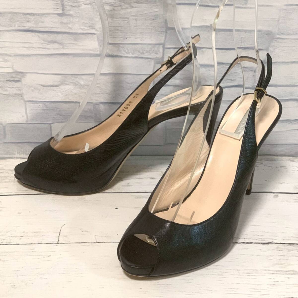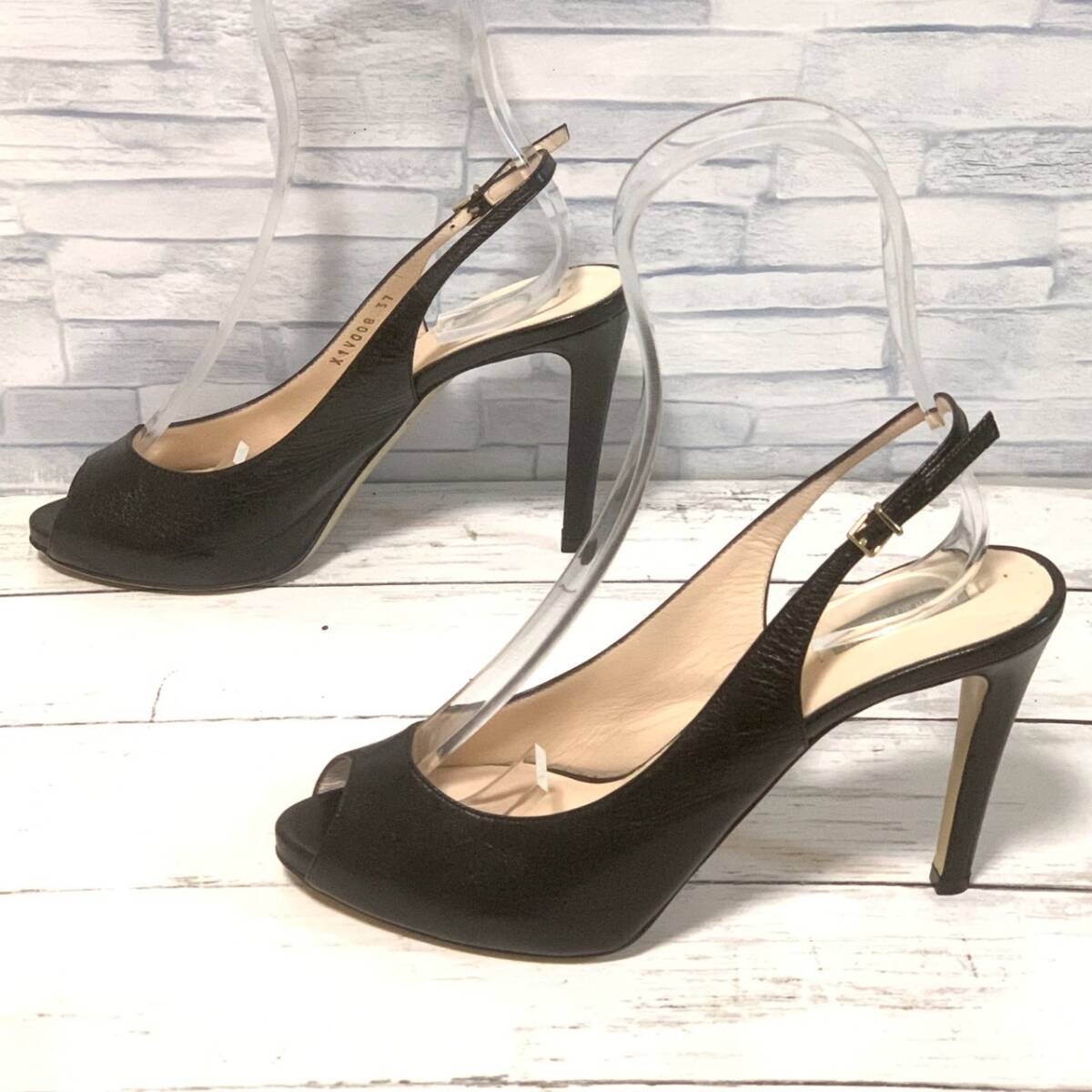 R9690bA GIORGIO ARMANI ジョルジオ アルマーニ サイズ37(24cm位)ヒールパンプス オープントゥー ブラック ヒール高さ10cm位