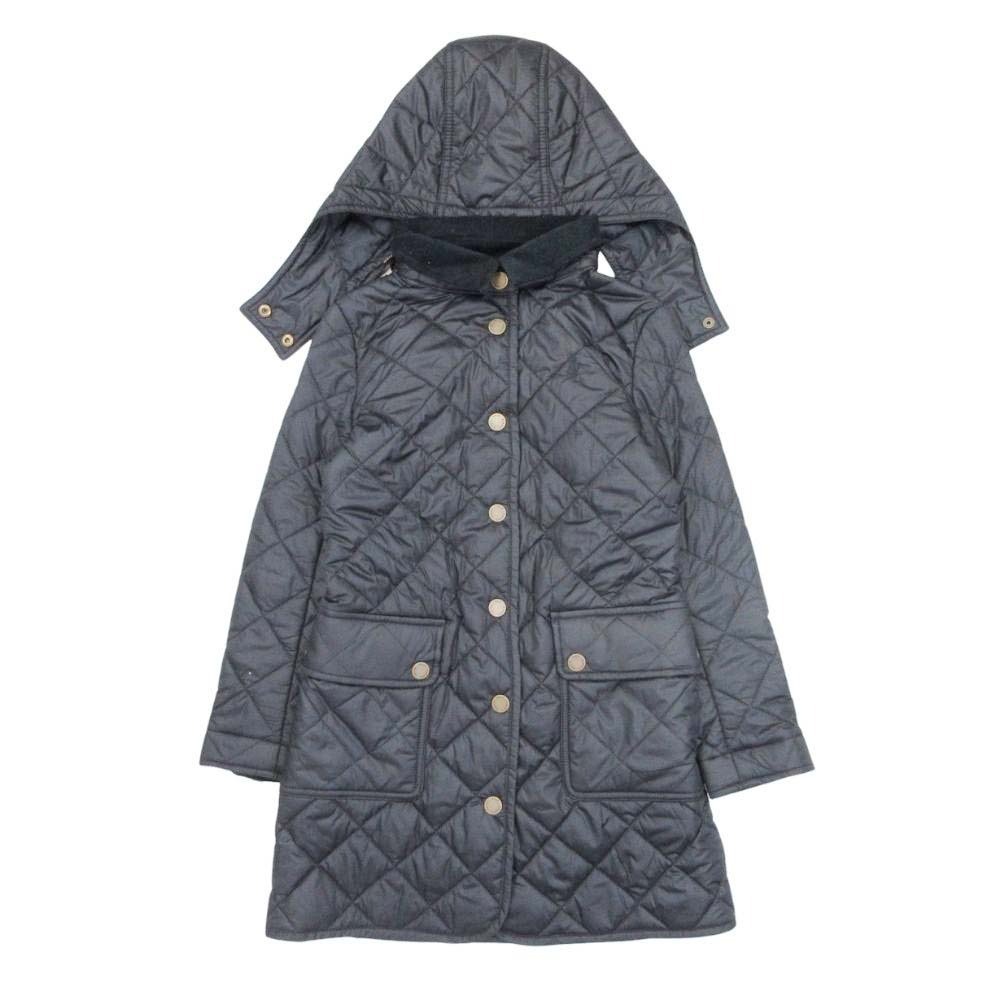 フードの取外し可能な2WAY仕様の中綿入りキルティングコート。ポニー刺繍入り。後ろ側ウエストに切替があり、裾に向かってややテーパードしたシルエット。