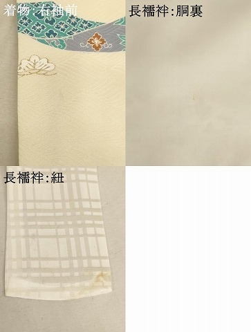 | 産着【正絹・五つ紋】の状態は接写画像のように右袖前に薄い汚れがございますが その他特に目立ったシミ汚れなどもなく大変良い状態です。 長襦袢【化繊】の状態は接写画像のように胴裏に薄い汚れ、紐に汚れがございますが その他特に目立ったシミ汚れなどもなく大変良い状態です。 大変上質な逸品になります。 お安く出品致しますので、是非この機会にいかがでしょうか? ※長襦袢はセットになっております。
