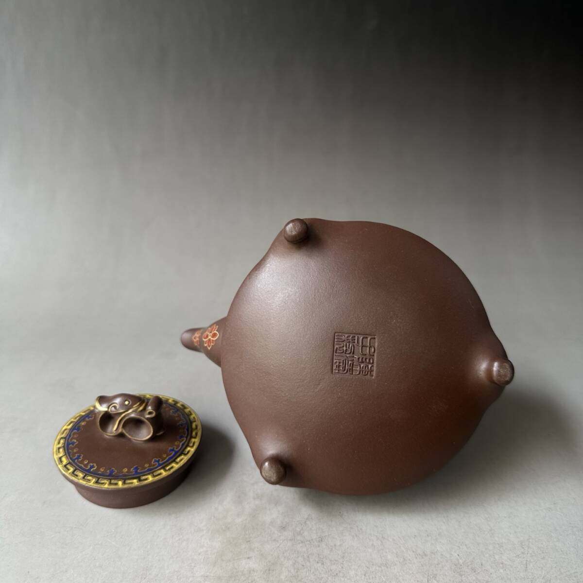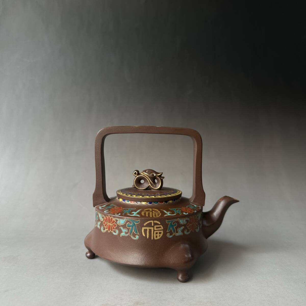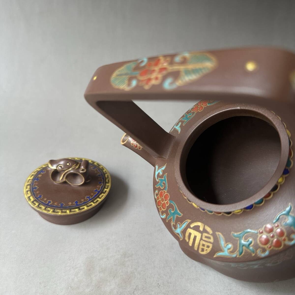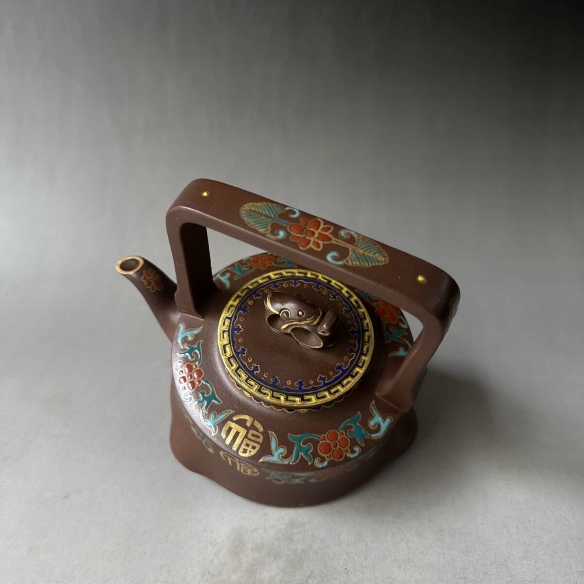 【超珍館蔵】紫砂壺 三足提梁壺 陳涛手製款 紫砂 茶具 茶道品 置物 賞物 古賞物 古董品 古美術品 時代物 旧家蔵出 稀少珍蔵品
