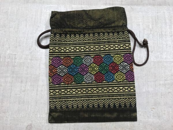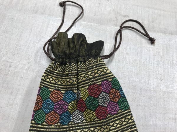 タイ スーベニア お土産 エスニック 民族 オリエンタル ポーチ 巾着袋 小物入れ ミニバッグ レディース 幾何学模様 ゴールド系 です。