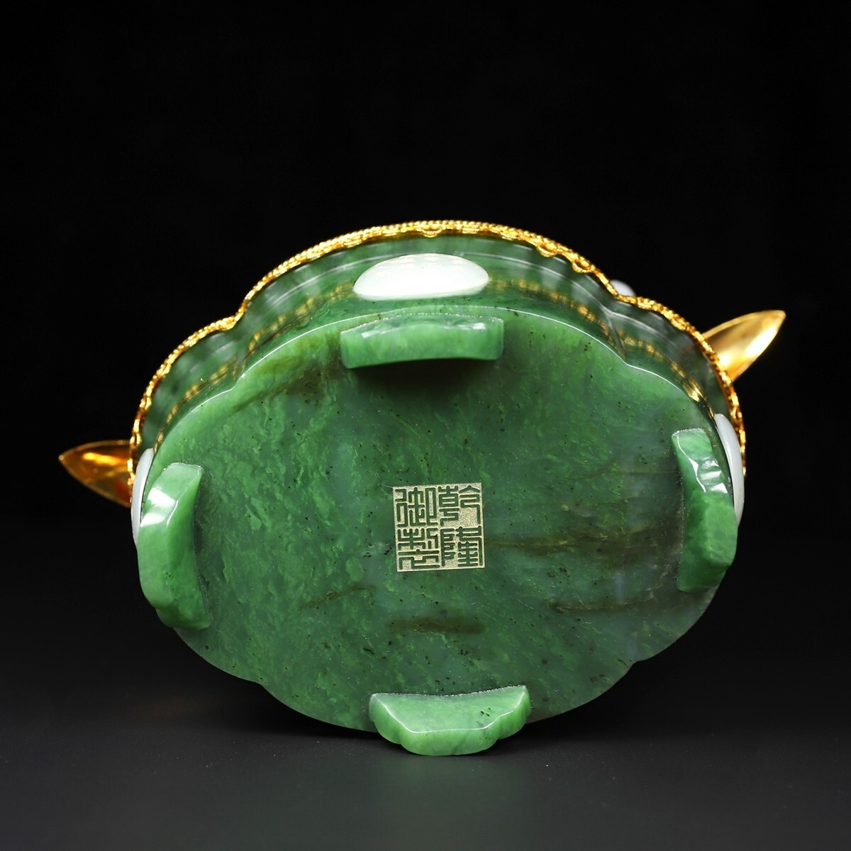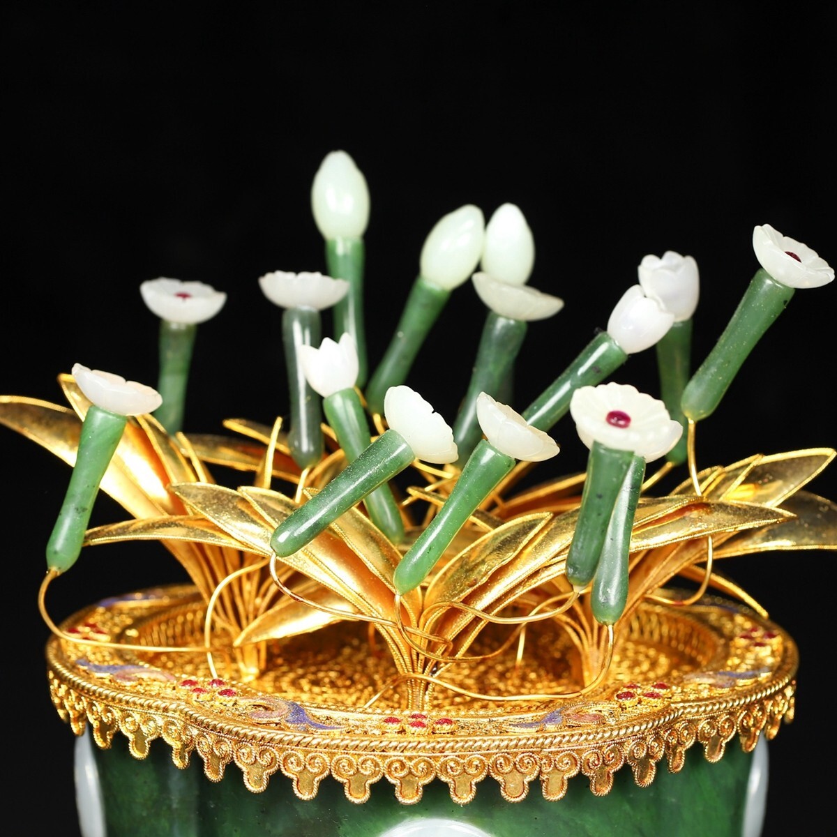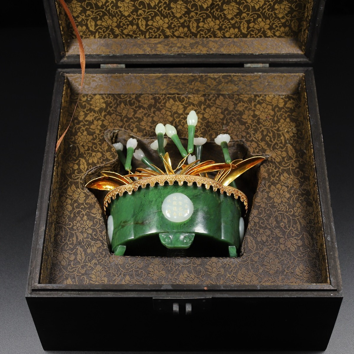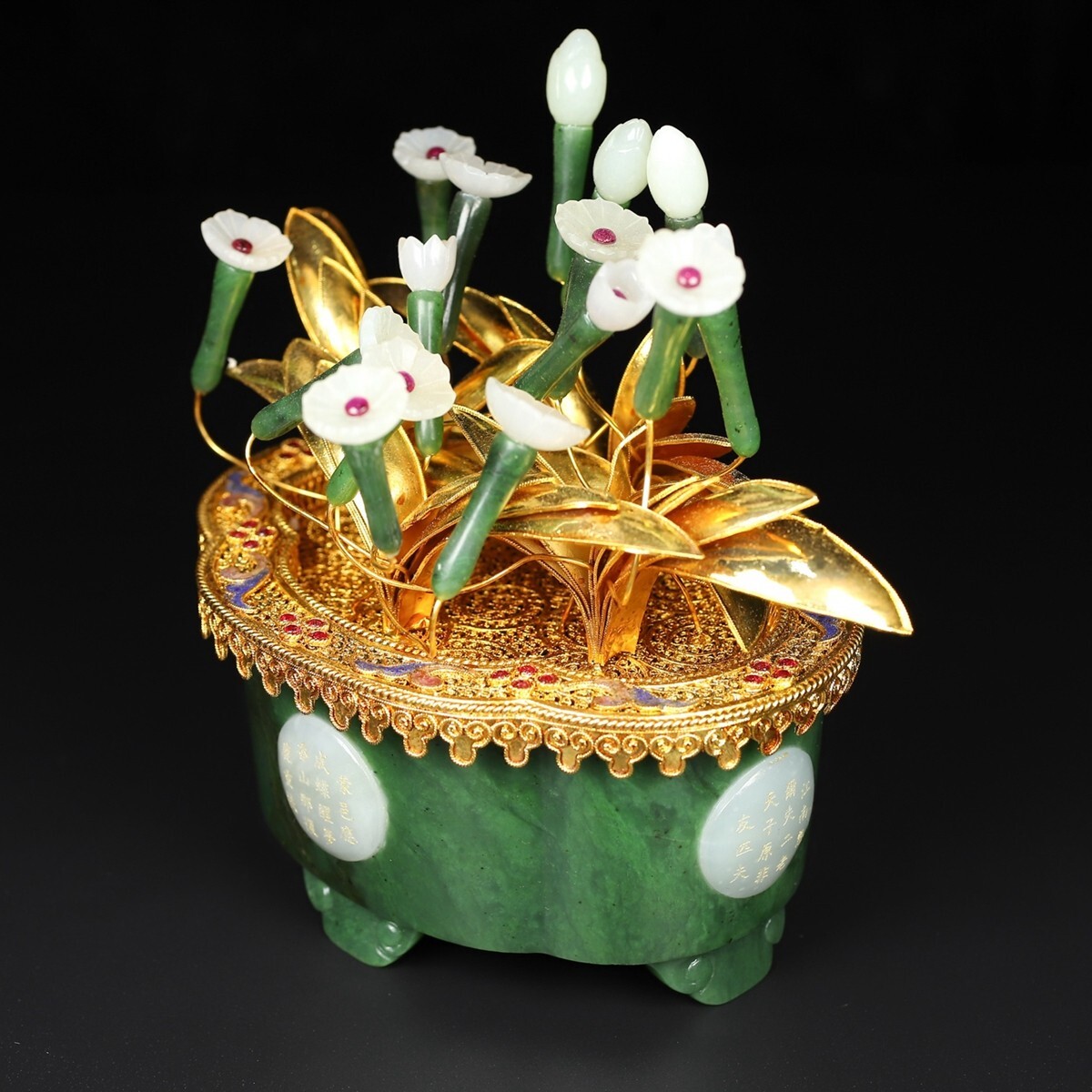 「清 乾隆御製 和田玉 碧玉彫り 花盆」極細工 擺件 中国古賞物 古美術 旧蔵出
