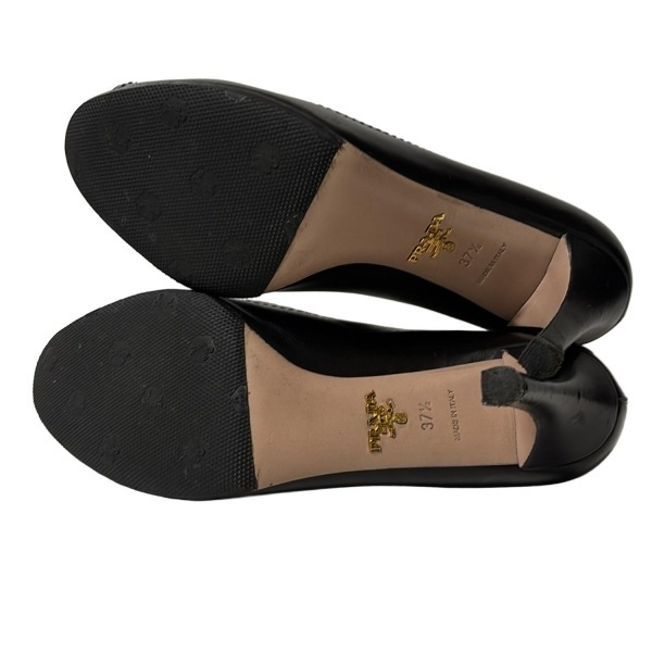 プラダ PRADA パンプス 37 1/2 - レザー 黒 レディース オープントゥ/アウトソール張替済 靴