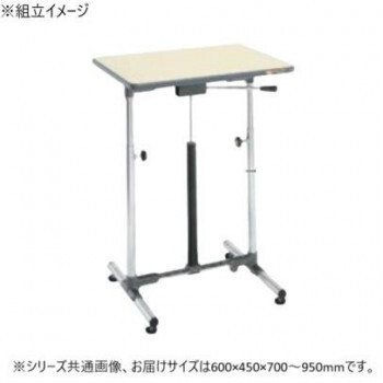| 仕様 | 外寸:W600×D450×H700~950mm 均等耐荷重:50kg 質量:14kg 天板サイズ:600×450×21mm 天板材質:ポリエステル天板 天板カラー:アイボリー キャスター:50φゴム車 組立式 |