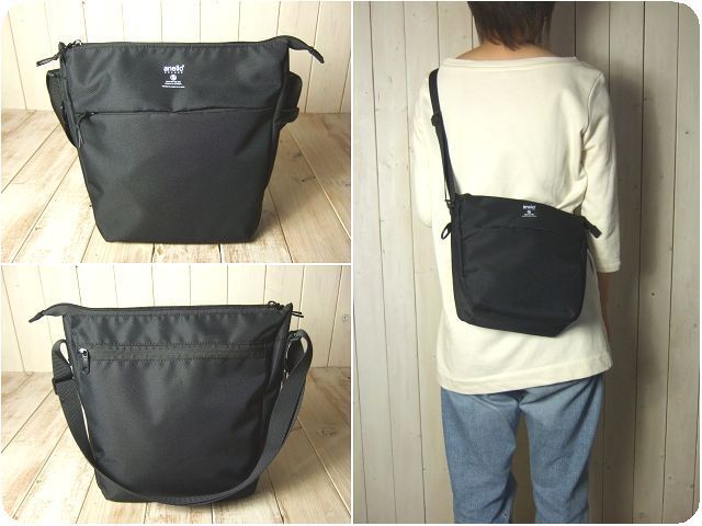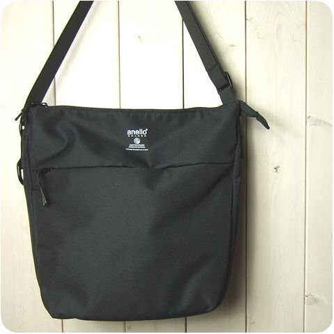 アネロ anello 軽量撥水ポリエステルツイル素材の縦型ショルダー BK