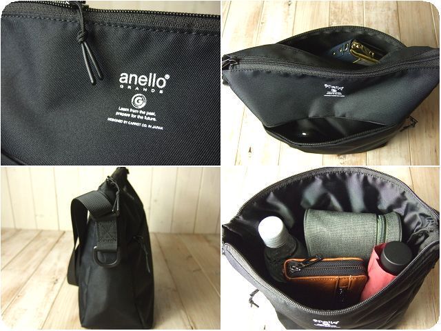 超軽量なボディで、500mlのペットボトルや長財布が縦に入るサイズ感です。【anello】「GRANDE」のネームプリントがアクセントになっています。