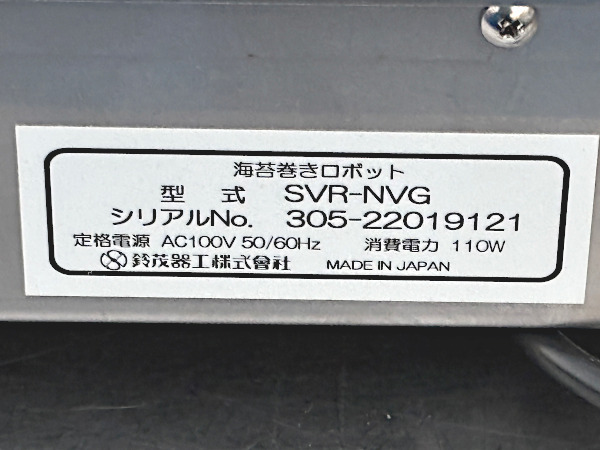 2022年製 スズモ SVR-NVG 鈴茂器工 SUZUMO 海苔巻きロボット 寿司ロボット 単相100V 卓上 のり巻き | |||||||||||||||||||