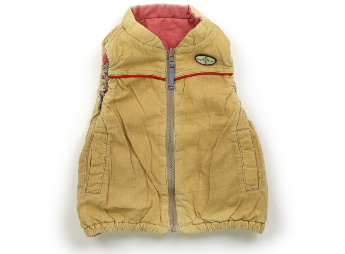 カットソー生地とコーデュロイ生地のリバーシブル。中綿はポリエステル。コーデュロイ生地の首元にシールはがし跡のノリ残りあり。全体にやや色褪せがあります。使用感はありますが、まだまだお使いいただけます。