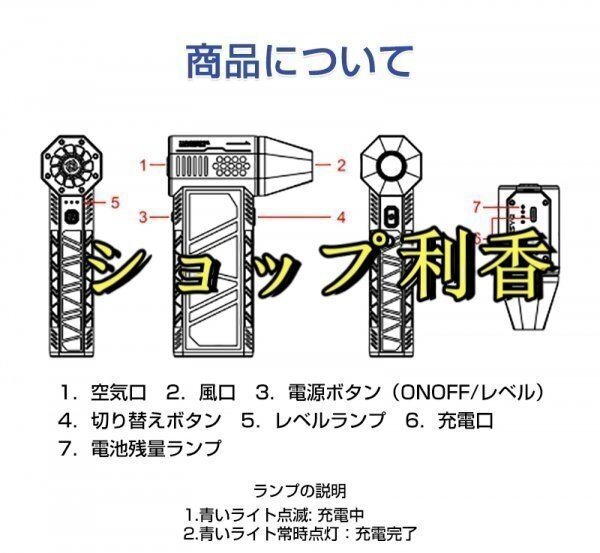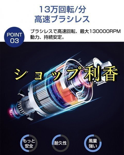 商品説明 商品説明 【商品詳細】★状態:新品未使用・超長のバッテリー持続時間、1つのモードで最大4時間使用可能、電池容量は3,000mAhの大容量。充電はUSB Type-C。・130,000rpmの強力な風力。強運転は風速52m/秒の強い風が出る・高速ブラシレスモーターが搭載されているの