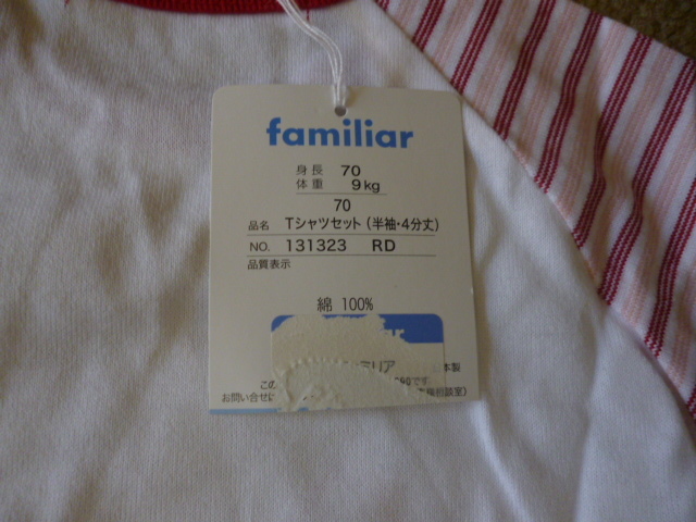 【未使用】 familiar Tシャツセット(半袖4分丈) 70 ベビー服 ファミリア 女の子 ※長期保管品