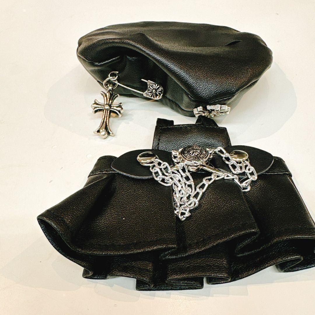 ○ ブラックレザー風ワンピース チェーンベルト付き