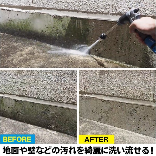 高水圧で地面や壁の汚れを「ズバッ」と落とします。