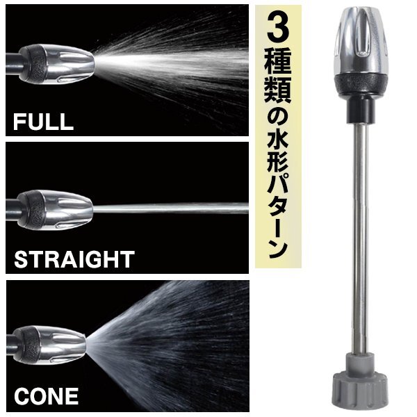 ノズル部分を操作して3種類の水形パターンに切り替え可能。