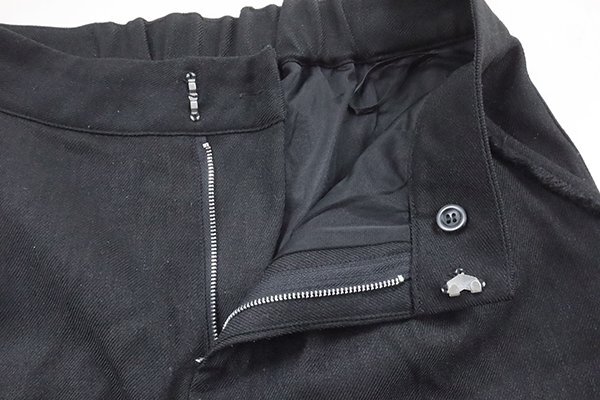 VIVIENNE TAM ◆ 1プリーツ ワイドパンツ 黒 サイズ38 (ウエストゴム) ポリギャバ センタープレス フレア ヴィヴィアンタム ◆307/ES22