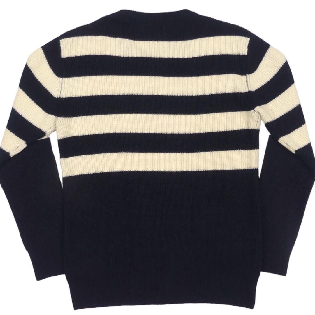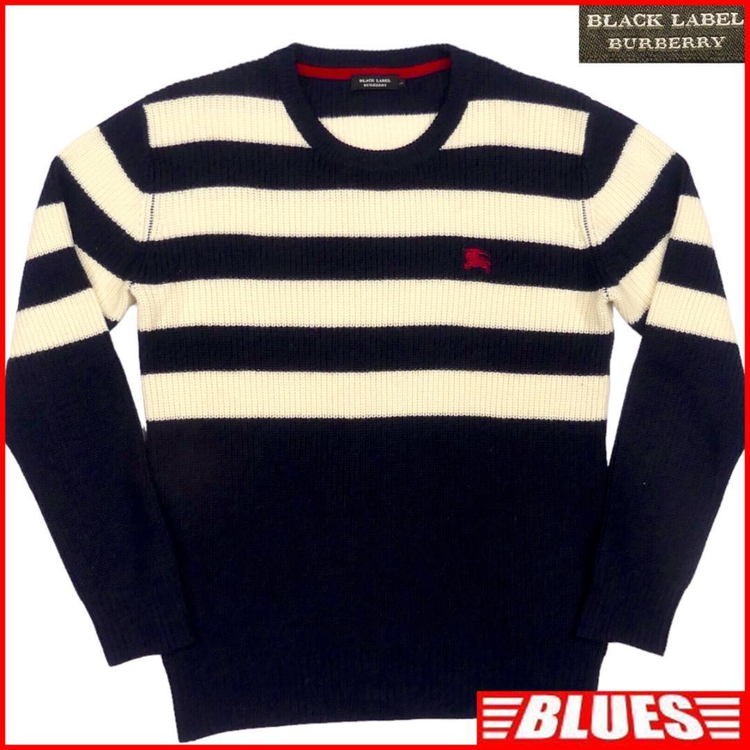 即決★BURBERRY BLACK LABEL★メンズM 廃版 ニット セーター バーバリーブラックレーベル 2 紺 ウール ネイビー ボーダー 刺繍